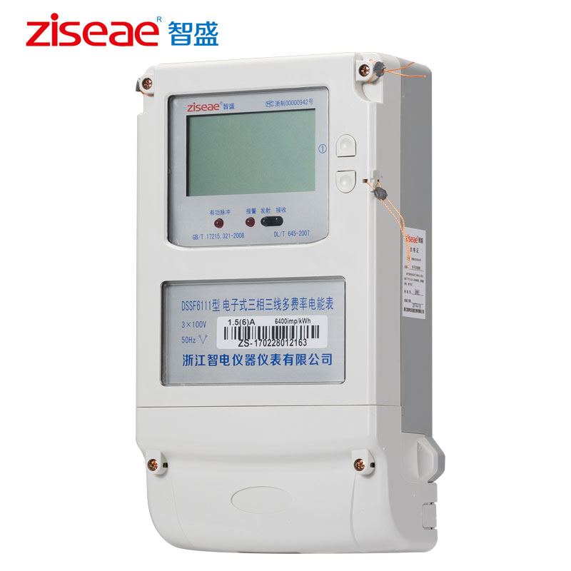 DTSF6111三相四线  DSSF6111 三相三线电子式多费率电能表(尖峰平谷电表),具有分时计量用户所用电能功能,并可实现多种用电费率计费和集中抄表功能的电能计量电能表,该表技术性能符合GB/T17215.321-2008《1级和2级电子式交流有功电度表》和GB/T15284-2002《复费率(分时)电度表》国家标准的要求,适用于计量额定频率为50Hz或60Hz三相交流有功电能。