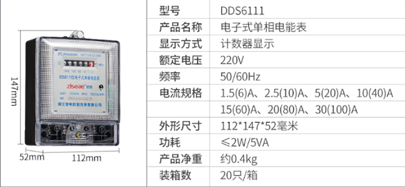 DDS6111型单相电子式电能表,由于采用集成电路和SMT制造工艺,使之测量准确度,稳定性等均得到了可靠保证.适用计量额定频率为50Hz,额定电压为220V的单相交流有功电能.