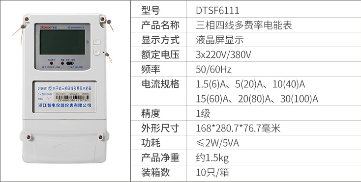 DTSF6111三相四线  DSSF6111 三相三线电子式多费率电能表(尖峰平谷电表),具有分时计量用户所用电能功能,并可实现多种用电费率计费和集中抄表功能的电能计量电能表,该表技术性能符合GB/T17215.321-2008《1级和2级电子式交流有功电度表》和GB/T15284-2002《复费率(分时)电度表》国家标准的要求,适用于计量额定频率为50Hz或60Hz三相交流有功电能。