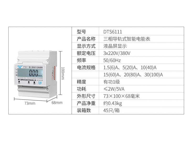 DTS6111、DSS6111型三相有功电能表,是一种室内三相电能表,是我公司为了适应我国电网改造,适应我国国情而设计开发的电能表。它具有较高的准确度和可行性。本仪表采用国际先进的低功耗模集成电路技术及SMT先进工艺,关键元器件选用进口品牌、长寿命器件,提高了产品的可靠性,延长了使用寿命。准确计量有功电能,且可以通过红外通讯方式抄电量,读数直观且使用方便。本仪表设计符合标准GB/T 17215.321-2008《1级和2级静止式交流有功电能表》、GB/T 17215.323-2008《2级和3级静止式交流无功电能表》。